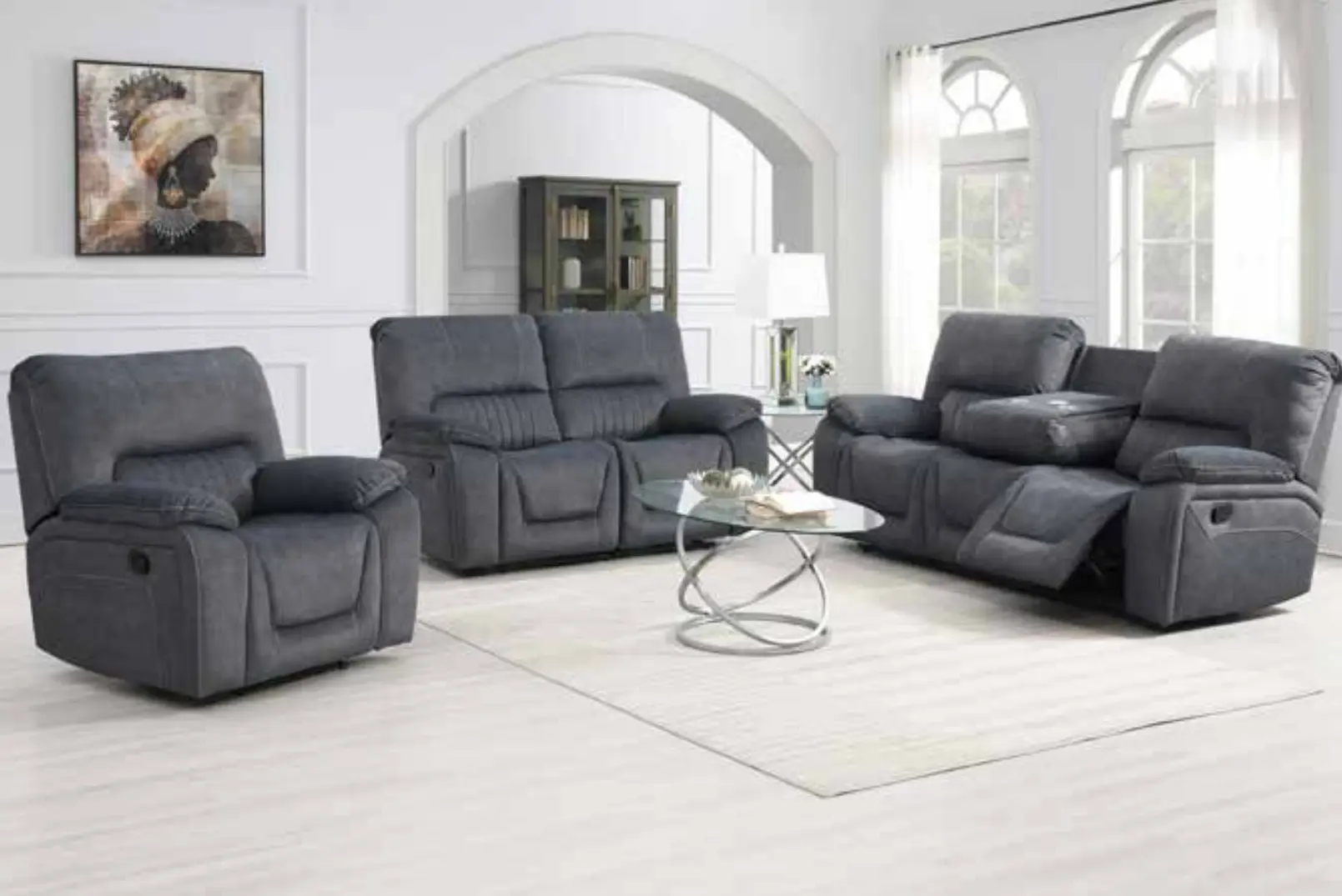 See the incredible Avondale Recliner Sofa Collection. Available in a fantastic grey colour, the Avondale provides beautiful soft fabric upholstery with incredible comfort. With it’s increible padded head + arm rests paired with manual reclining to provide the must luxury expierience, you can be sure this item will be a great fit for any living room. This sofa comes available in a number of combinations.
