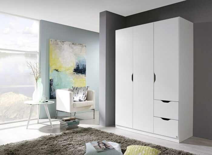 The Freising Wardrobe is available in 3 different sizes and offers a very minimalistic but stylish look to a room. The wardrobe comes in a full Alpine White colour with shaped doors and drawers to allow easy opening and closing of the wardrobe. The wardrobe comes with a number of shelves for easy storage, these can be easily moved and removed to allow flexible storage. The 2 door comes with a simple hanging rail design while the 3 and 4 door wardrobe comes with some drawers with smaller doors above them as shown in the diagrams. Very easy and quick to assemble.