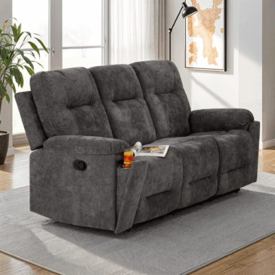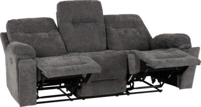 Upholstered in contemporary pebble grey fabric, the Guildford 3 Seater Recliner Sofa offers generous seating with exceptional comfort. The soft-touch upholstery is paired with deep padded seats, supportive high backs, and cushioned armrests for everyday relaxation. Featuring smooth reclining functionality, it provides a practical and stylish centrepiece for any modern living space.