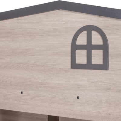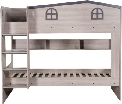The Hector Bunk Bed is a playful yet practical sleep solution designed to turn any child’s bedroom into an imaginative retreat. Crafted with an ash grey wood-effect finish, this sturdy bunk features a charming “house” design complete with a roofline and window cut-outs on the top bunk.